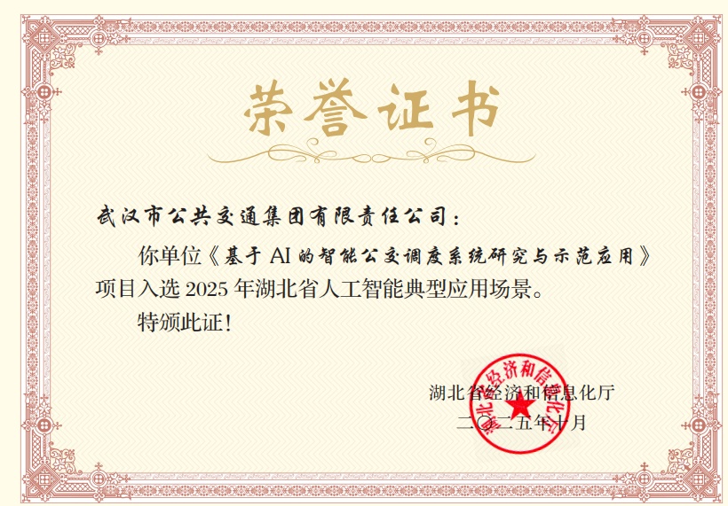 湖北日报讯(记者 黄杰 通讯员 方忠志)近日,湖北省信息技术经济局发布2025年人工智能典型应用场景清单,武汉公交集团“基于人工智能的智能公交调度系统研究与示范应用”项目成功入选。该项目聚焦“人、车、路”全要素调度系统,构建人工智能驱动的数据中台,深度融合实时客流、车辆位置、天气预警、历史大数据等多源异构信息。实时监控和分析公交车运行状态,动态分配运输资源,实现从识别、决策任务到执行的完整闭环。这将显着提升公交调度效率和服务水平,改善出行体验e 为公民和乘客。未来,武汉公交集团将持续深化人工智能应用场景,聚焦行业痛点,将人工智能落地拓展到更多细分场景,推动人工智能技术与传统公共交通全面融合、共同创新,为智慧城市建设和新生产力培育注入源源不断的动能。