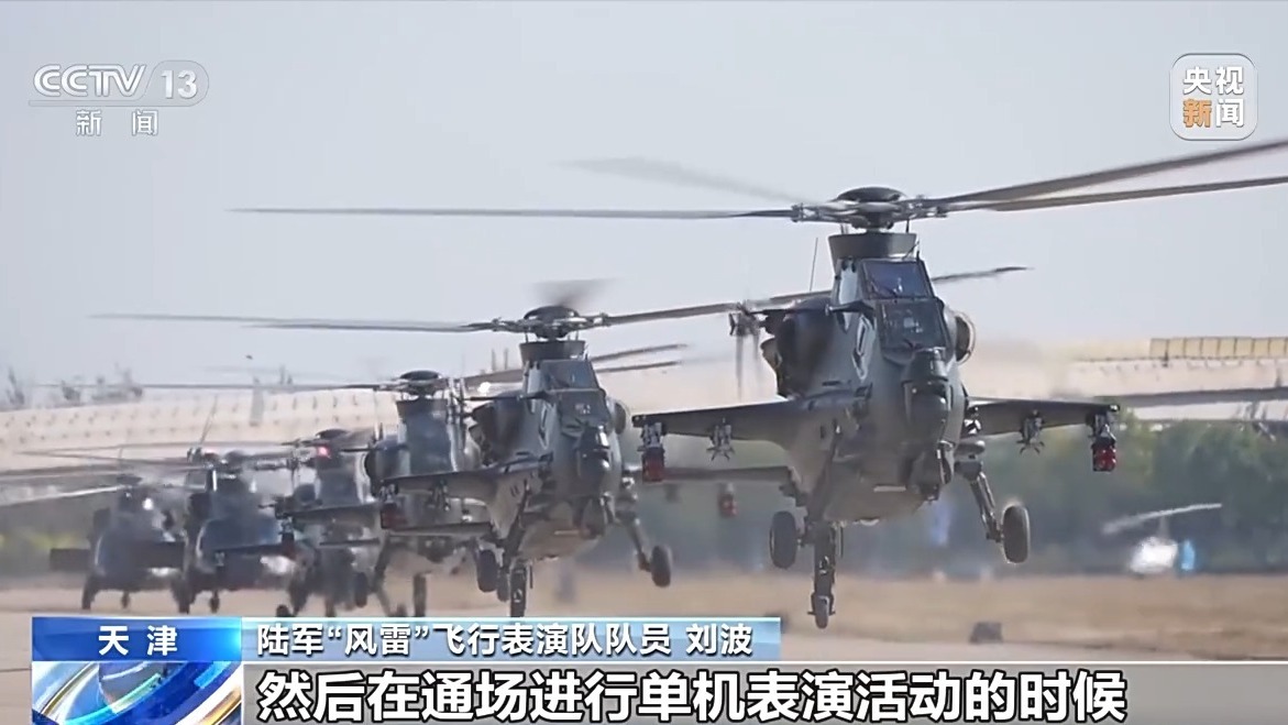 央视记者崔霞:我国自主研制的“五指十”武装直升机有一个特别可爱的名字,“霹雳”。它也是陆军雷霆特技飞行队的演示机。他到底有什么样的特殊能力呢?今天让我们仔细看看。